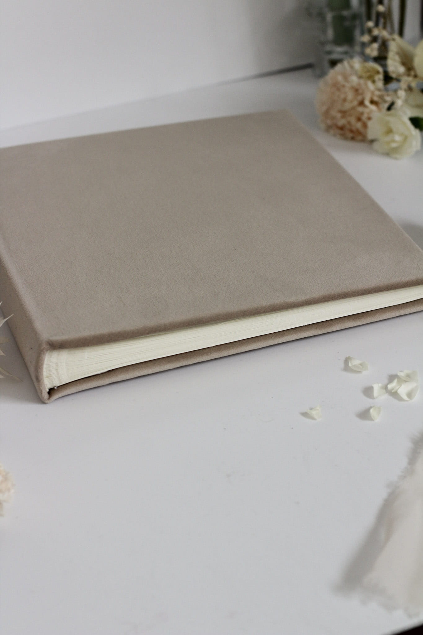 Welurowe wykończenie to jeden z najmodniejszych trendów w ślubnych dodatkach. Jego aksamitna faktura sprawia, że księga już na pierwszy rzut oka wygląda ekskluzywnie i stylowo. Miękka w dotyku powierzchnia nadaje jej elegancki, szlachetny wygląd, a subtelny połysk materiału dodaje głębi i sprawia, że prezentuje się niezwykle efektownie na ślubnym stole.