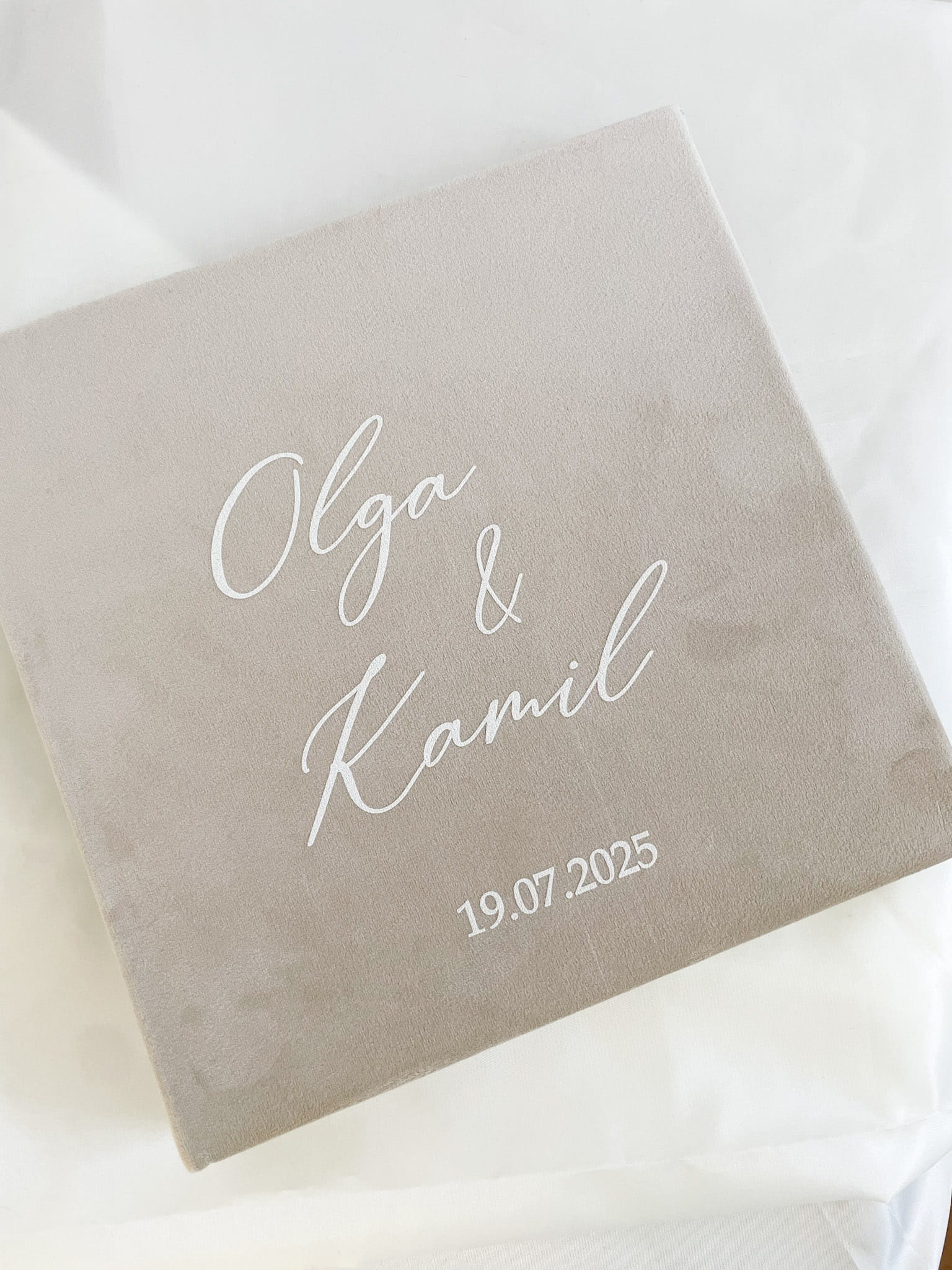 Niech każdy wpis w tej wyjątkowej księdze będzie pięknym śladem po najbliższych osobach, które towarzyszyły Wam w tym szczególnym dniu. Welurowa oprawa, personalizowany nadruk i starannie dobrane wnętrze sprawiają, że nasza księga gości to więcej niż album – to sentymentalna podróż do najpiękniejszych chwil Waszego życia.