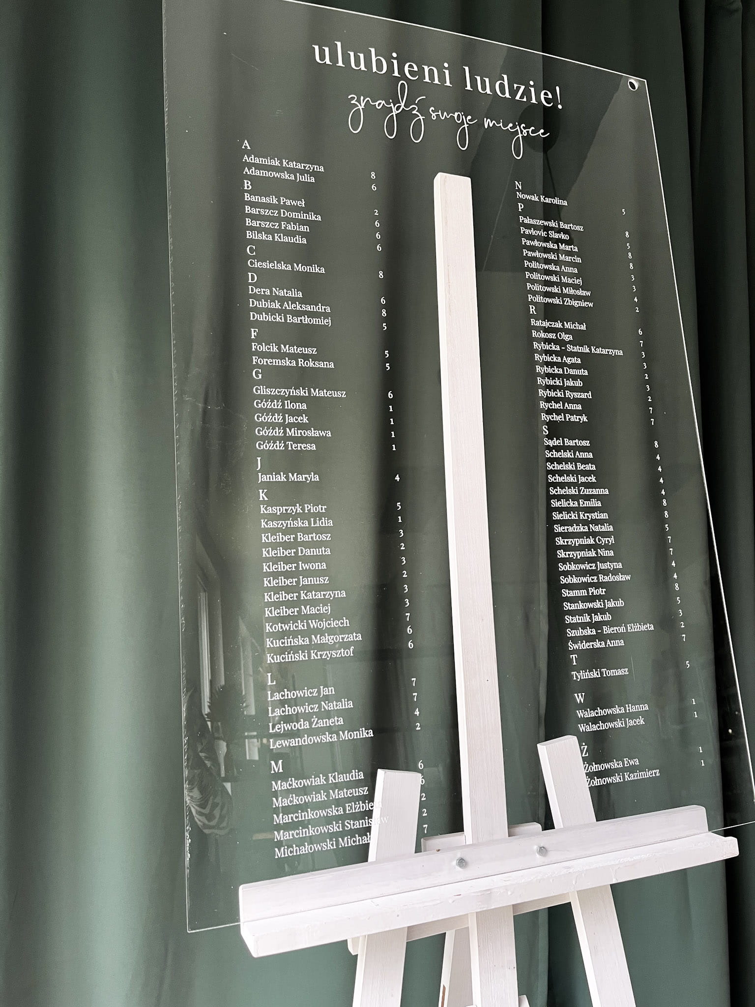 - rozkład gości alfabetyczny z przypisanym numerem stołu, w takiej formie prosimy o przesłanie pliku