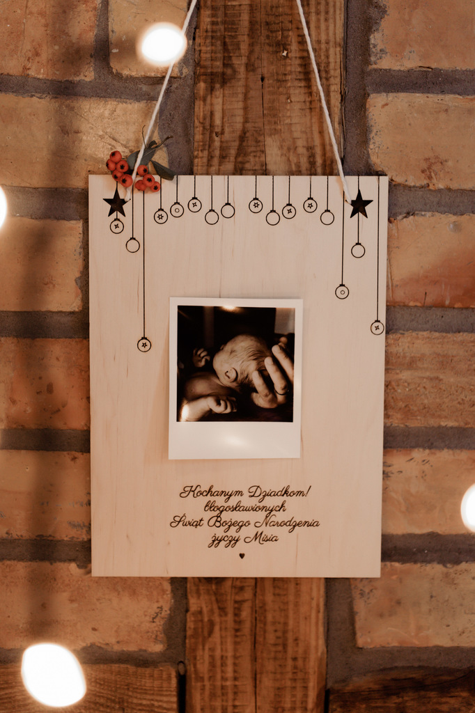 Drewniane kartka świąteczna z życzeniami dla Twoich bliskim oraz miejscem na zdjęcie to produkt, który z pewnością wywoła uśmiech na ich twarzy :)