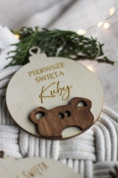 Drewniana bombka Pierwsze Święta - miś