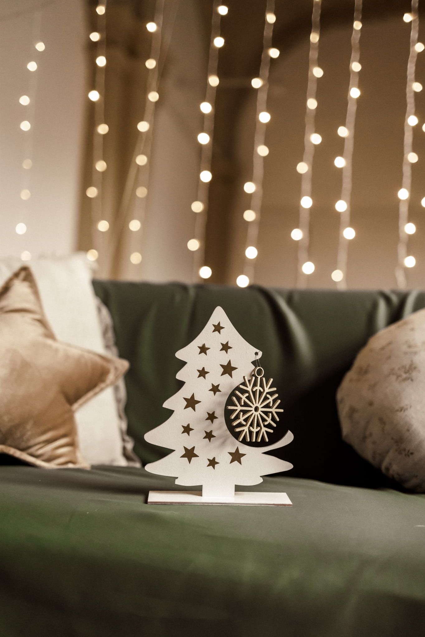 Ozdoba bożonarodzeniowa - piękna, biała choinka ze złotymi gwiazdkami, która idealnie wpasuje się w klimat nadchodzących Świąt!