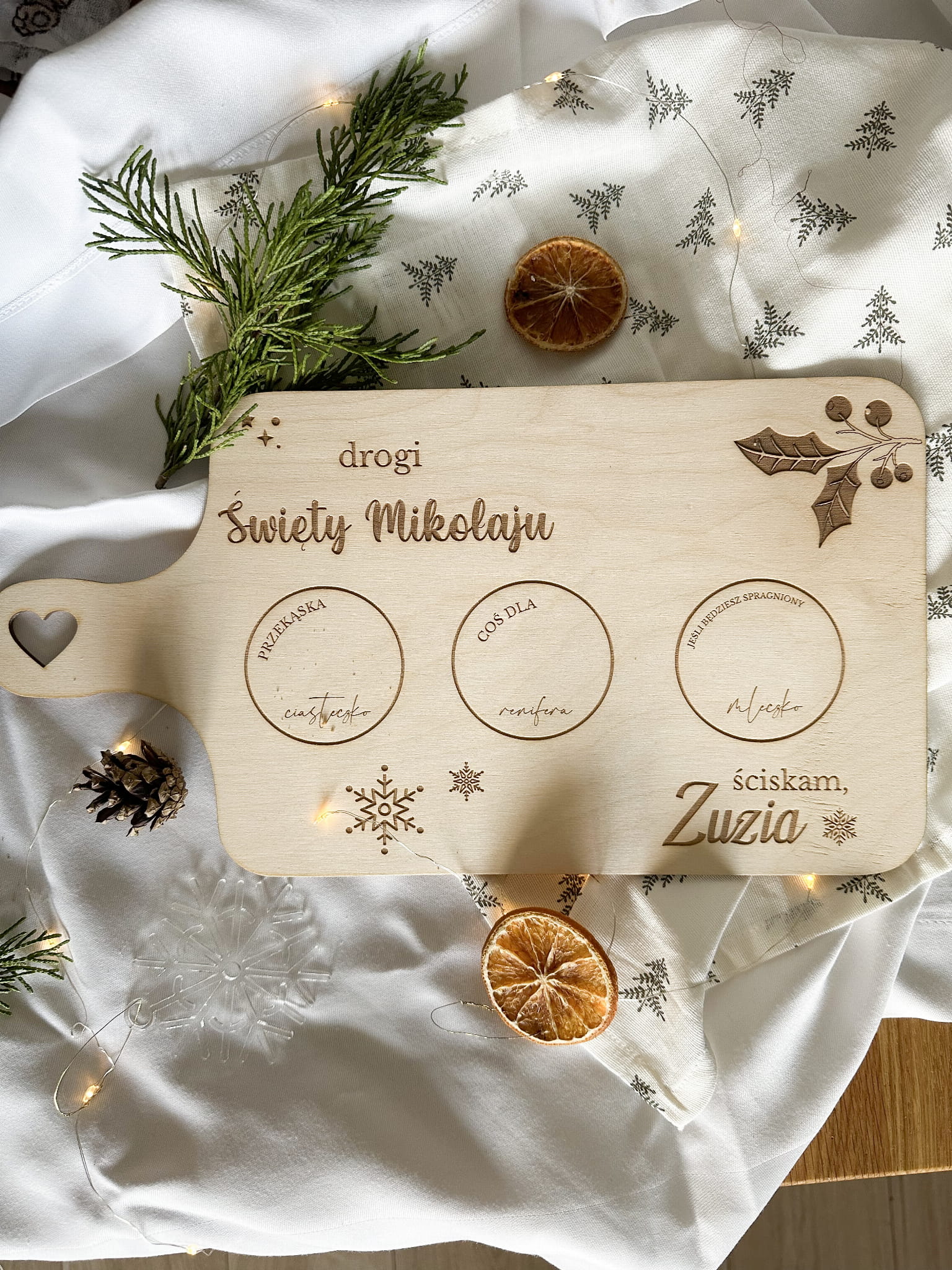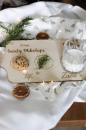 Pozostaw dla głodnego i spragnionego gwiazdora talerzyk - deskę, na którym znajdzie mleczko i ciasteczko, aby zregenerować siły przed daleką podróżą, w ciągu której musi rozwieźć prezenty po całym świecie!