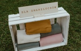 Drewniane skrzynki, które można wykorzystać jako stoliki, miejsce do przechowywania kocy czy też prezentów od gości.