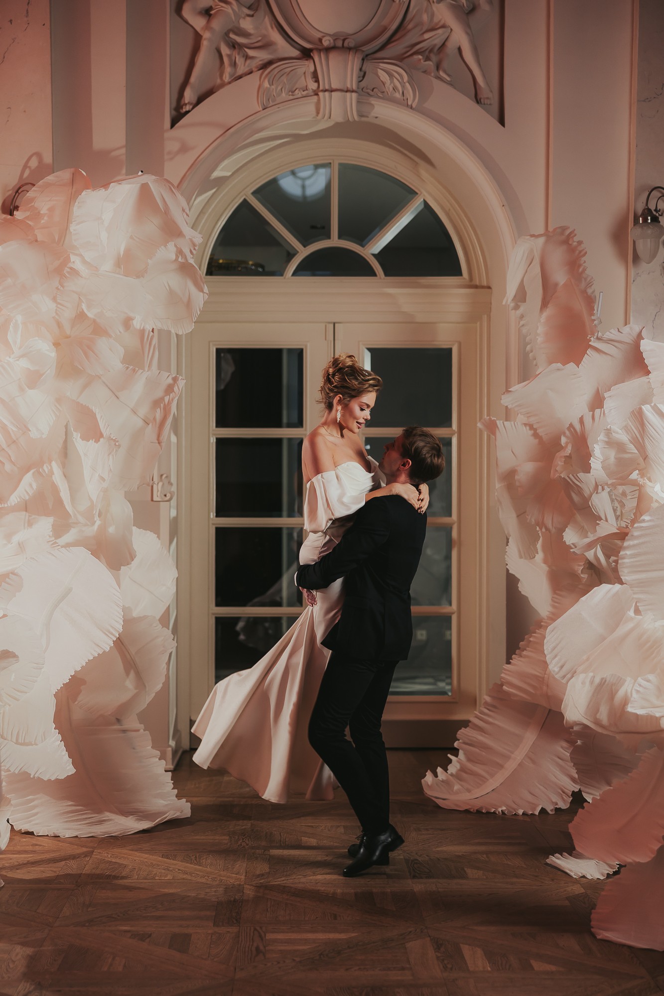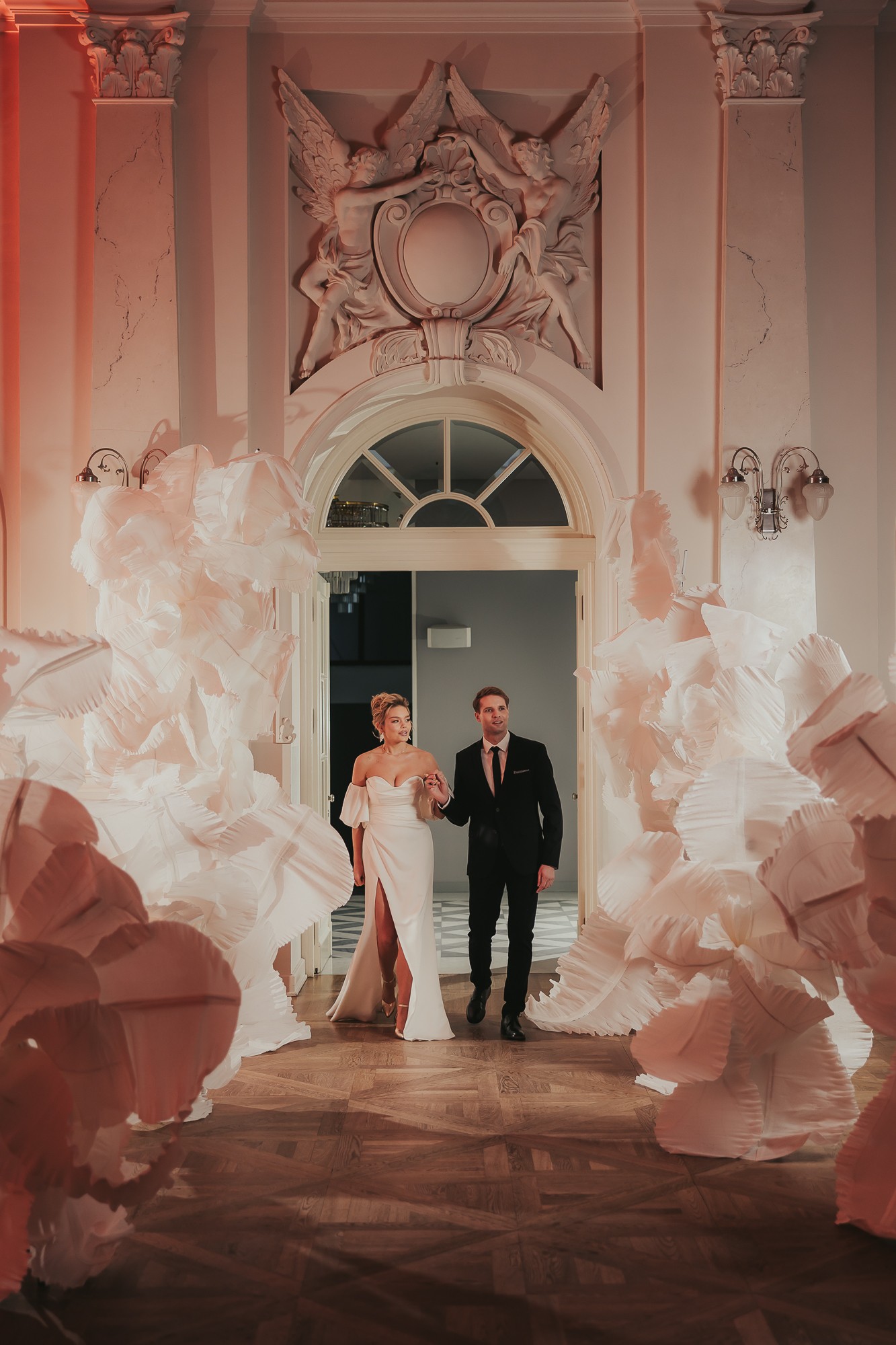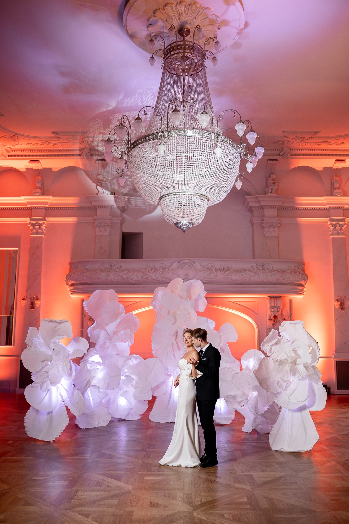 Instalacja kwiatowa 3D biała – dekoracja ślubna wynajem Poznań | Auree