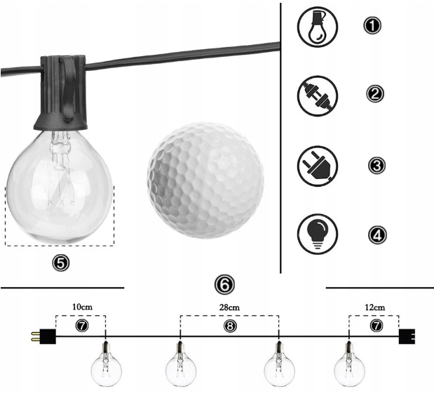 - 100 żarówek o średnicy 4 cm (tak jak piłeczka golfowa)