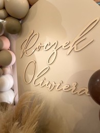 Drewniany napis z surowej sklejki o grubości 3mm. Doskonale sprawdzi się jako personalizacja ścianki balonowej.