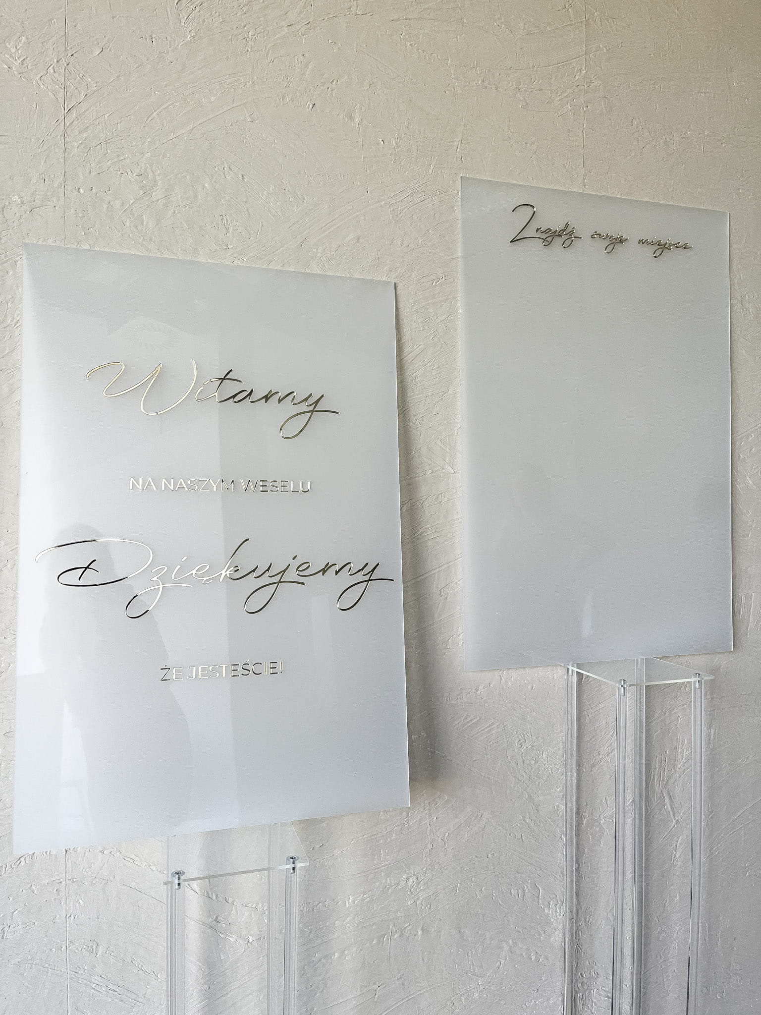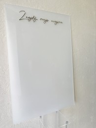 - materiał: plexi frost (efekt zmrożonej plexi) 3mm z nagłówkiem w kolorze lustrzanego złota lub srebra