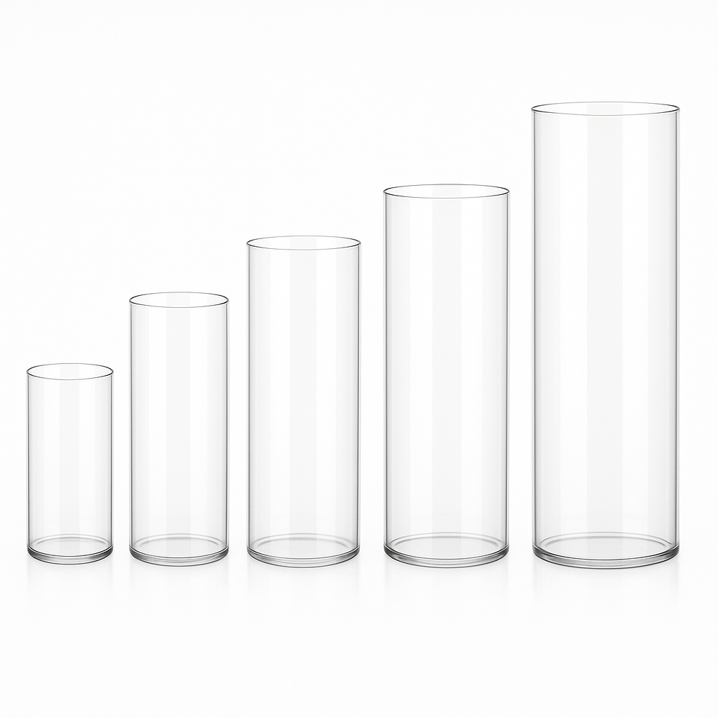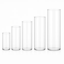 Wysokie, cylindryczne formy z transparentnego szkła pięknie eksponują świece, jednocześnie chroniąc płomień przed wiatrem i dodając aranżacjom lekkości oraz elegancji.