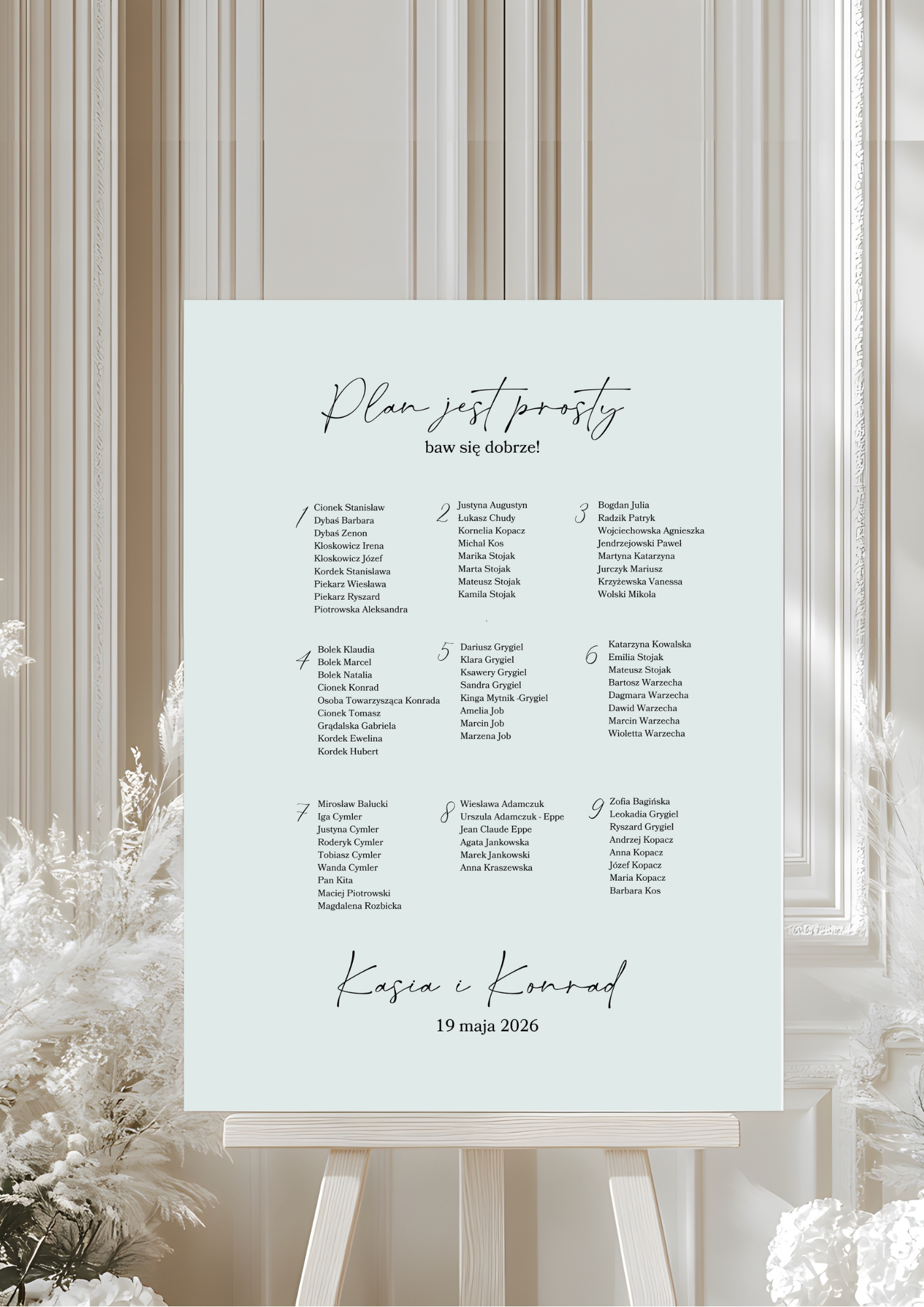 Przygotuj swoich gości na niezapomnianą zabawę, zaczynając od stylowej tablicy planu stołów. Wykonana z trwałego PCV, nie tylko pomoże odnaleźć właściwe miejsce, ale także stanie się eleganckim elementem dekoracyjnym.