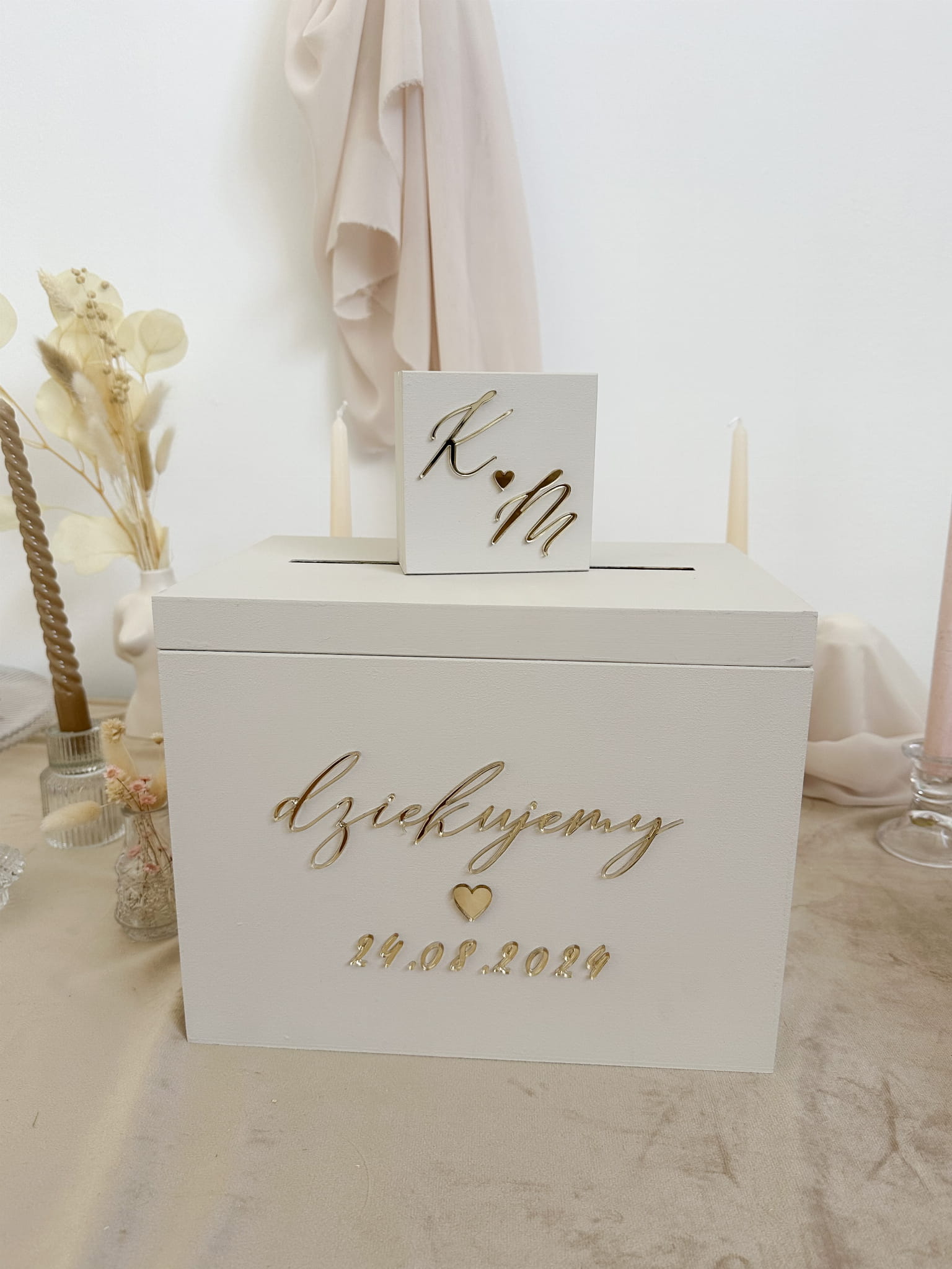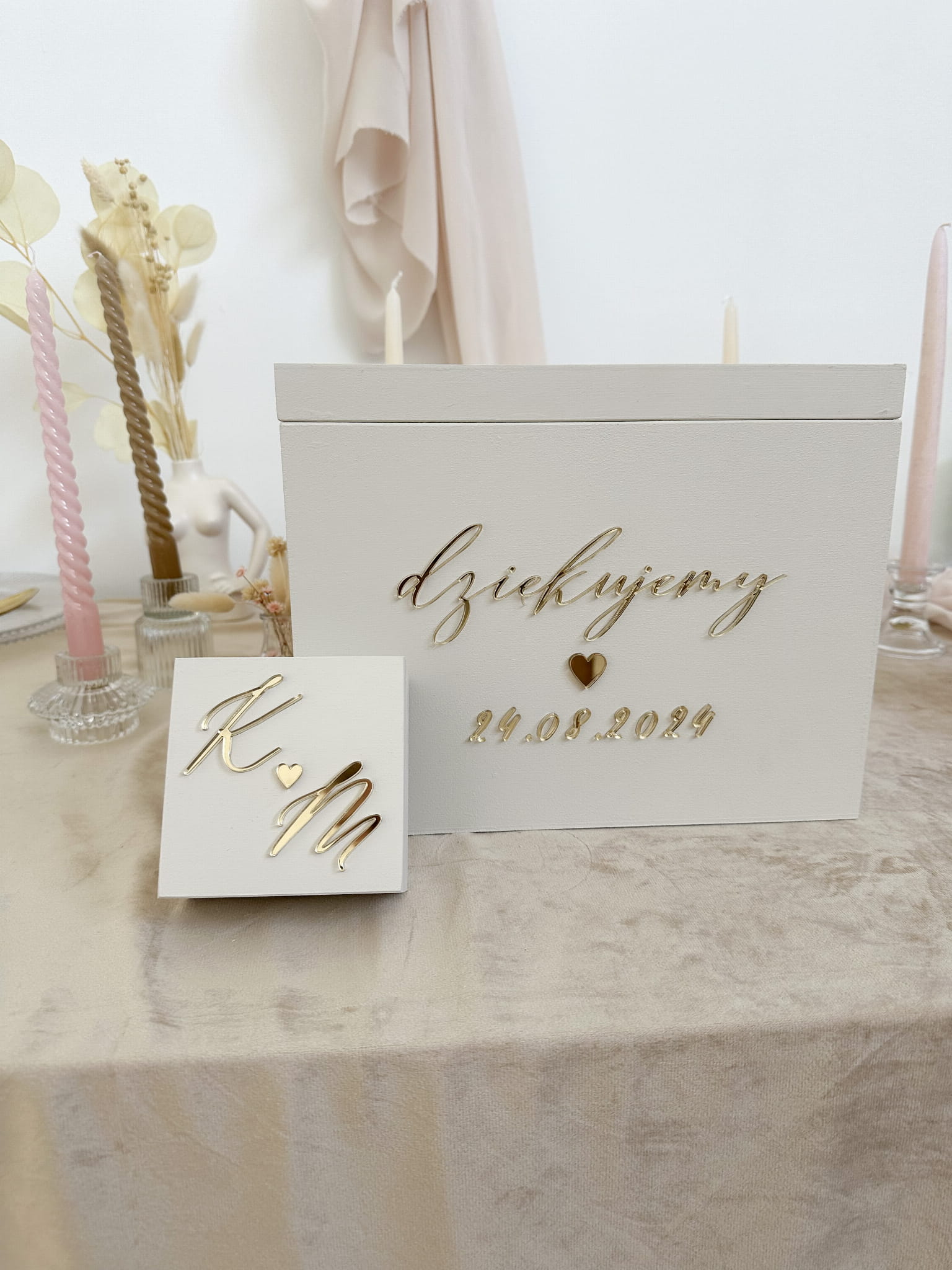 Beżowe, z lustrzanym napisem w kolorze złotym idealnie sprawdzi się na weselach o tematyce glamour.