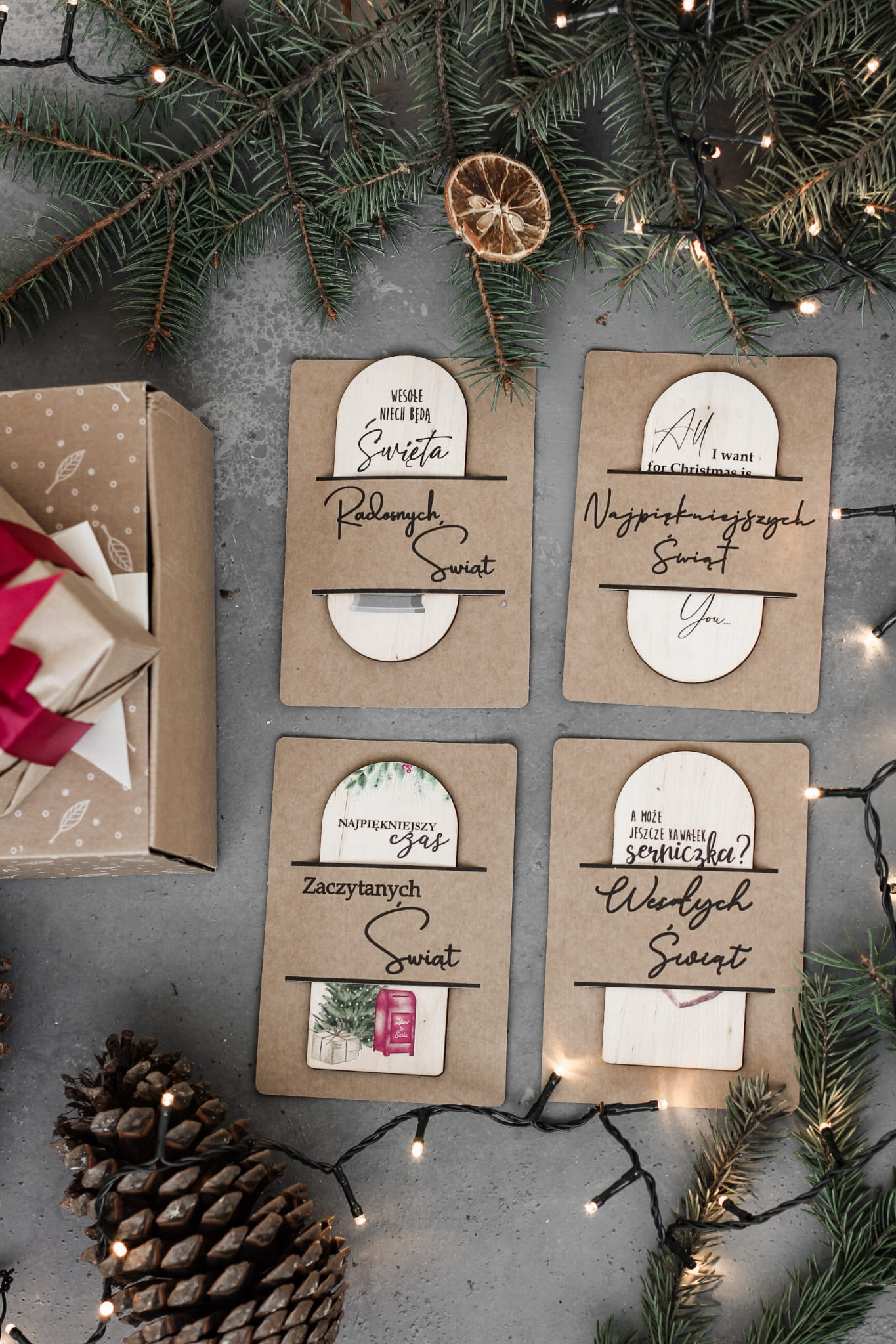 Do każdej zakładki dołączamy świąteczną tekturkę z życzeniami. Podaruj całość jako prezent dla najbliższych, lub dla siebie, jeśli cenisz te małe detale składające się na świąteczny efekt wow