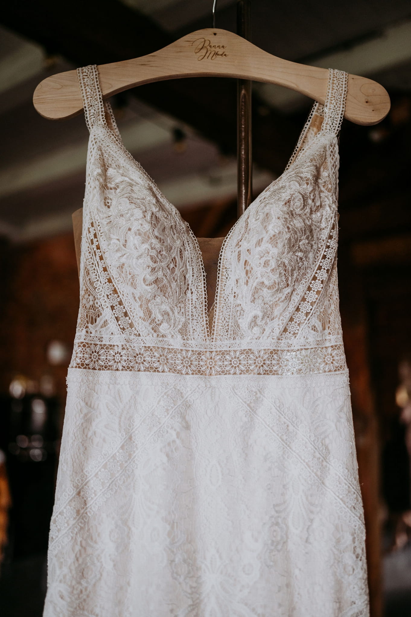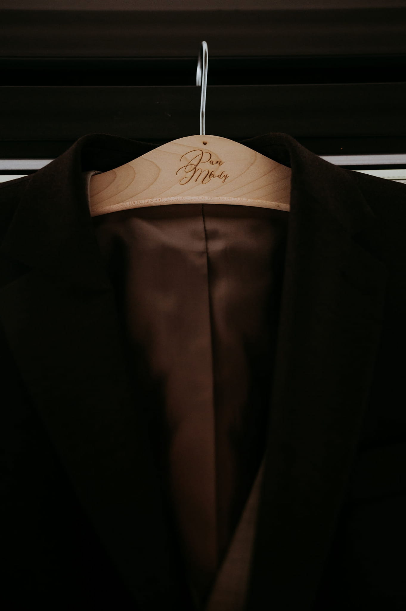 Rustykalne, drewniane wieszaki ślubne