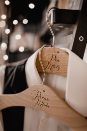 Zestaw naszych wieszaków to klimatyczny dodatek weselny idealny dla miłośników minimalizmu i pięknych detali. Wieszaki będą pięknie prezentowały się na zdjęciach z garniturem i suknią ślubną, a po udanym przyjęciu mogą być wykorzystane w codziennym, domowym użytku.