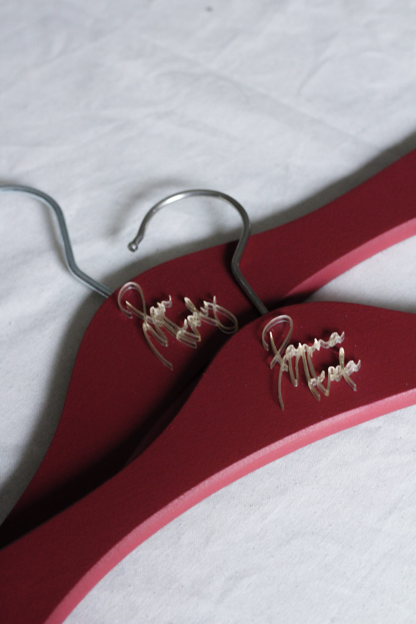 - tekst na wieszakach: Panna Młoda & Pan Młody w kolorze złotym