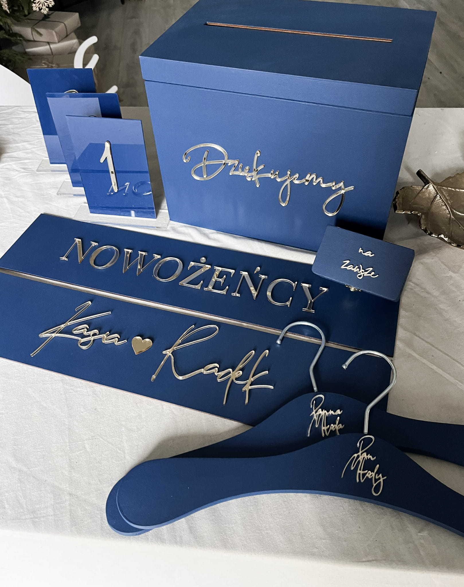 - tekst na wieszakach: Panna Młoda & Pan Młody w kolorze złotym